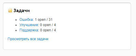 Видим задачи, разбитые по Трекерам – ошибка, улучшение и поддержка. Первое число показывает количество открытых задач, а число после косой черты – общее количество задач, открытых за все время.