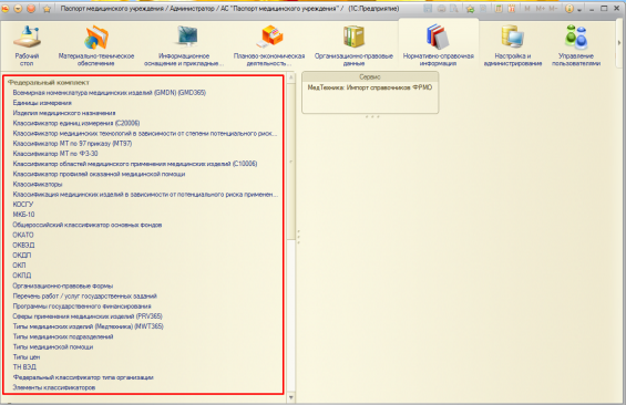 Федеральный комплект представляет собой общероссийские справочники и классификаторы. Источником медицинских справочников явился портал //http:%%//%%nsi.rosminzdrav//.