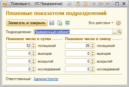 Необходимо ввести числовые показатели количества посещений, выездов, вскрытий и исследований в сутки и в смену.