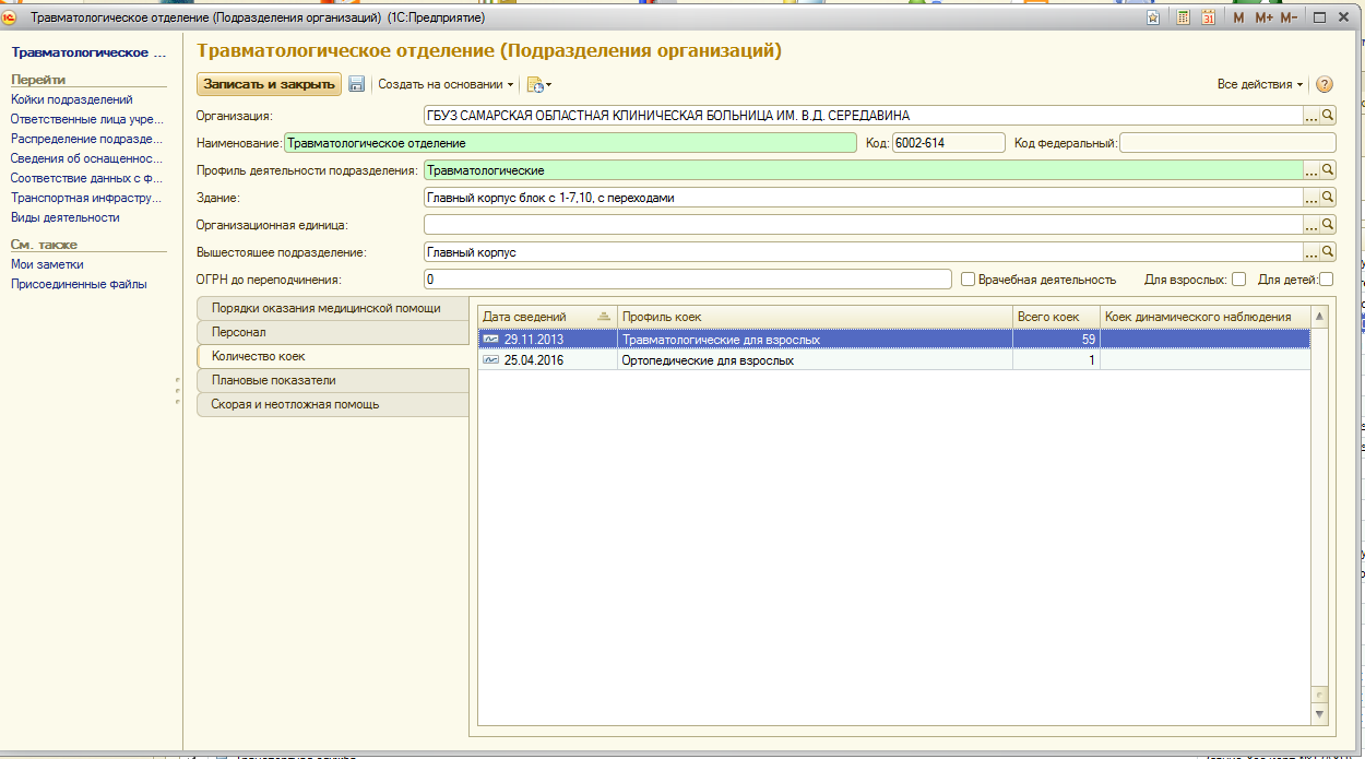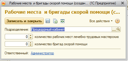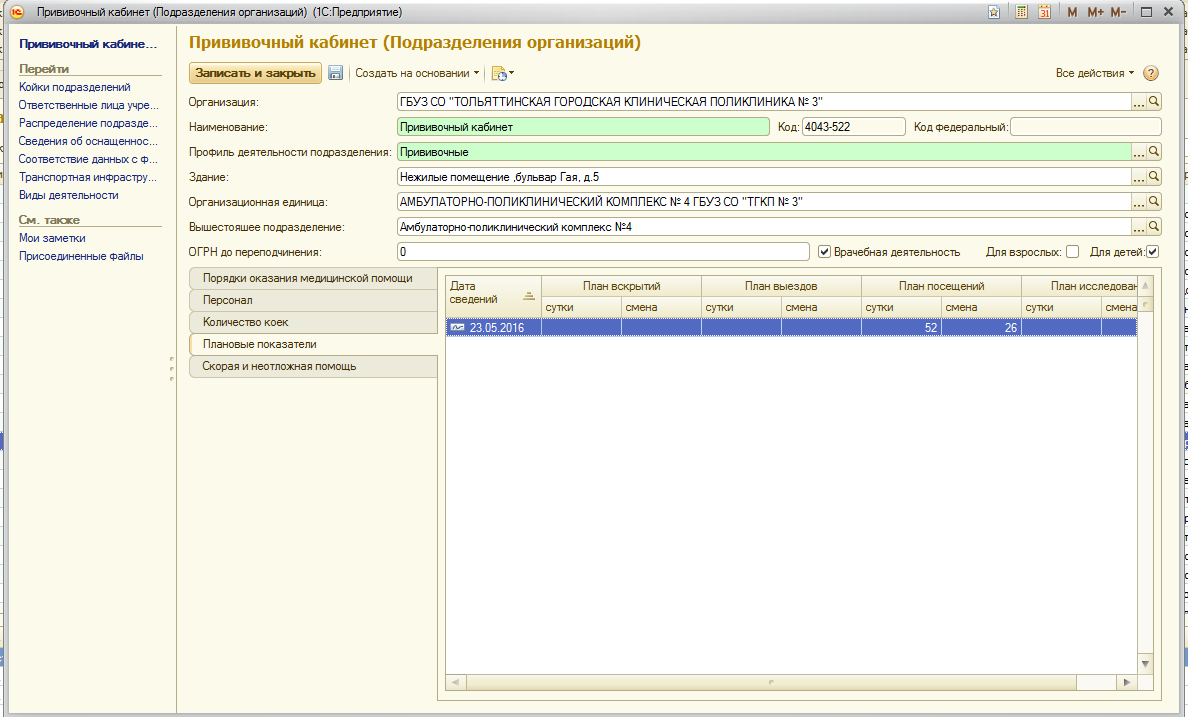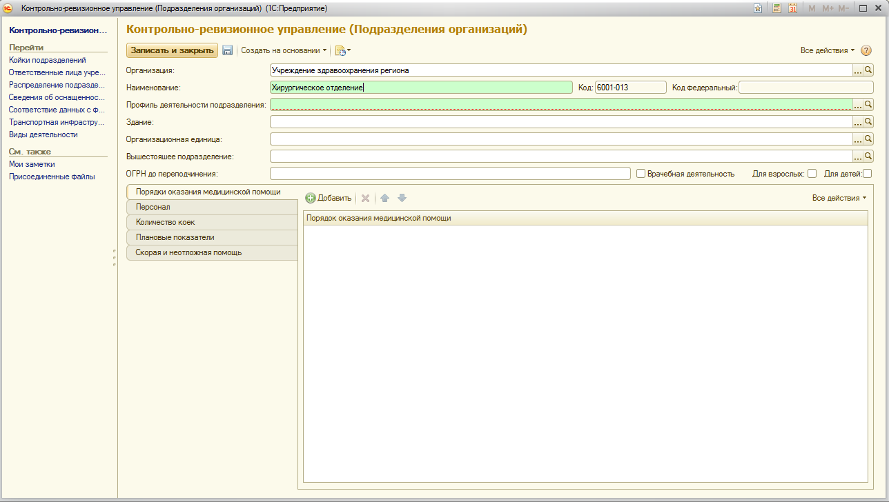 Сохранить внесенные данные в карточку подразделения можно с помощью кнопок «Записать объект» или «Записать и закрыть».