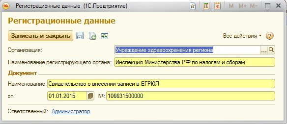 - Наименование регистрирующего органа – наименование органа государственной регистрации (строковое поле);