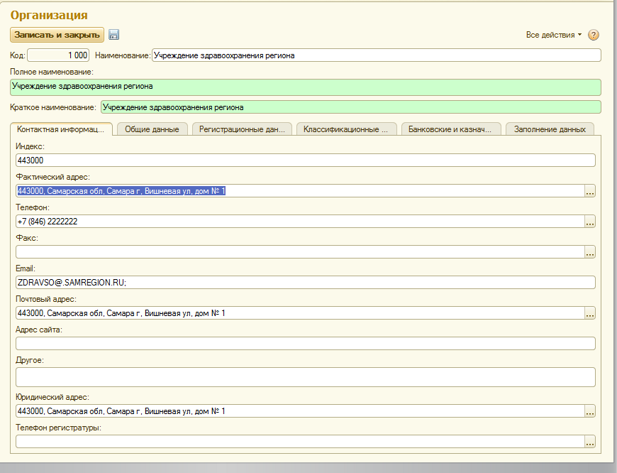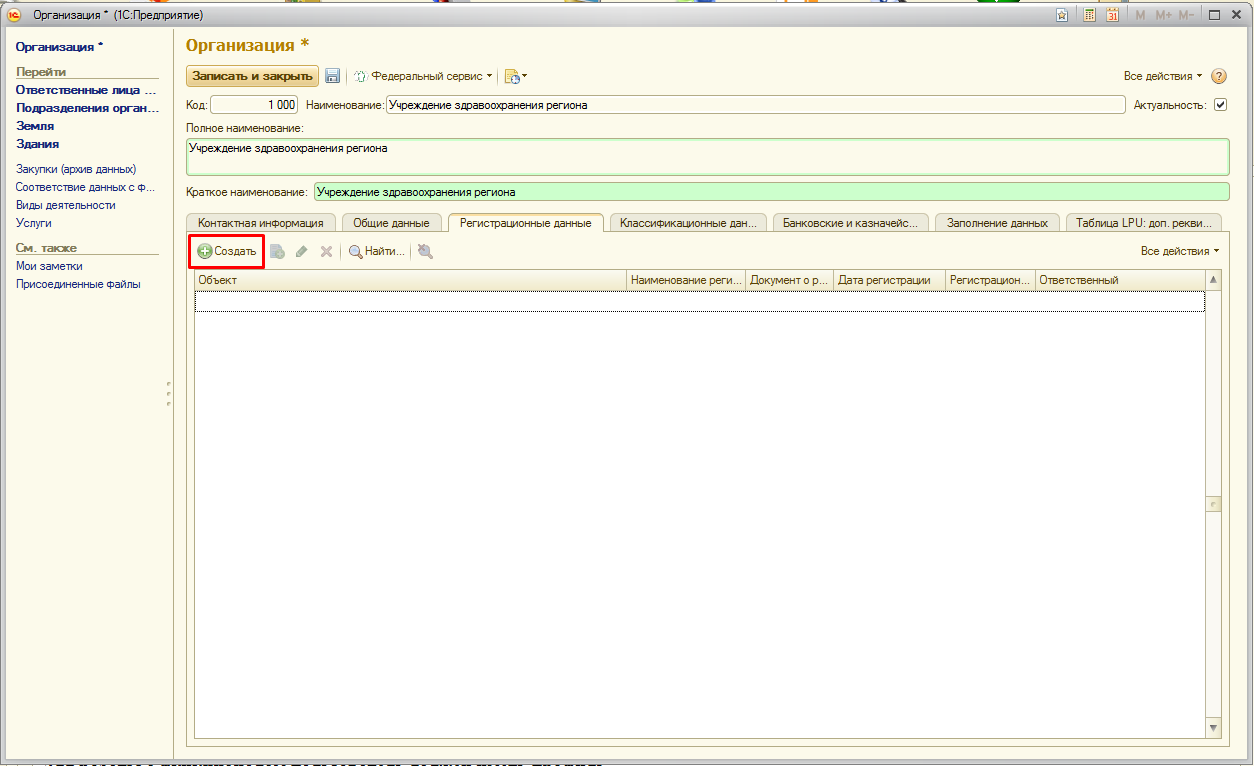 - Дата регистрации – дата регистрации учреждения (поле типа «Дата»);