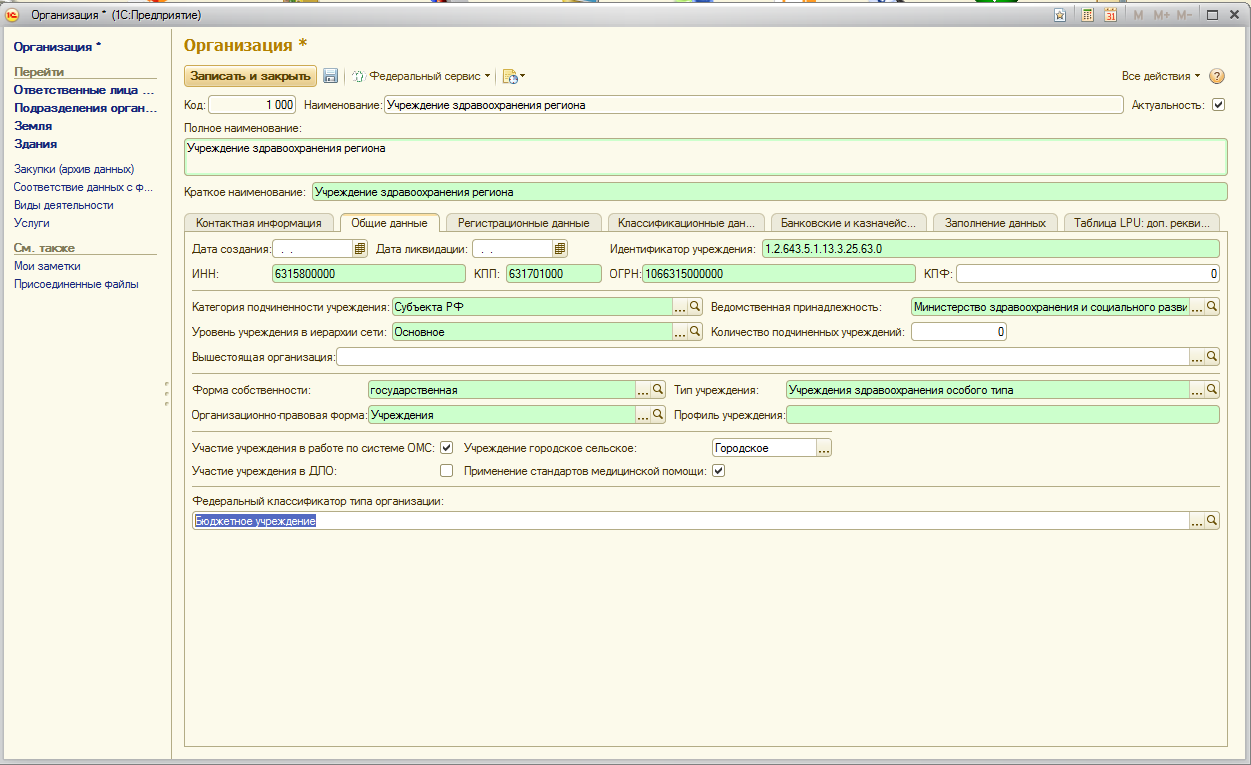 - Организационно-правовая форма - организационно-правовая форма учреждения в соответствии с ОКОПФ (поле ссылочного типа).