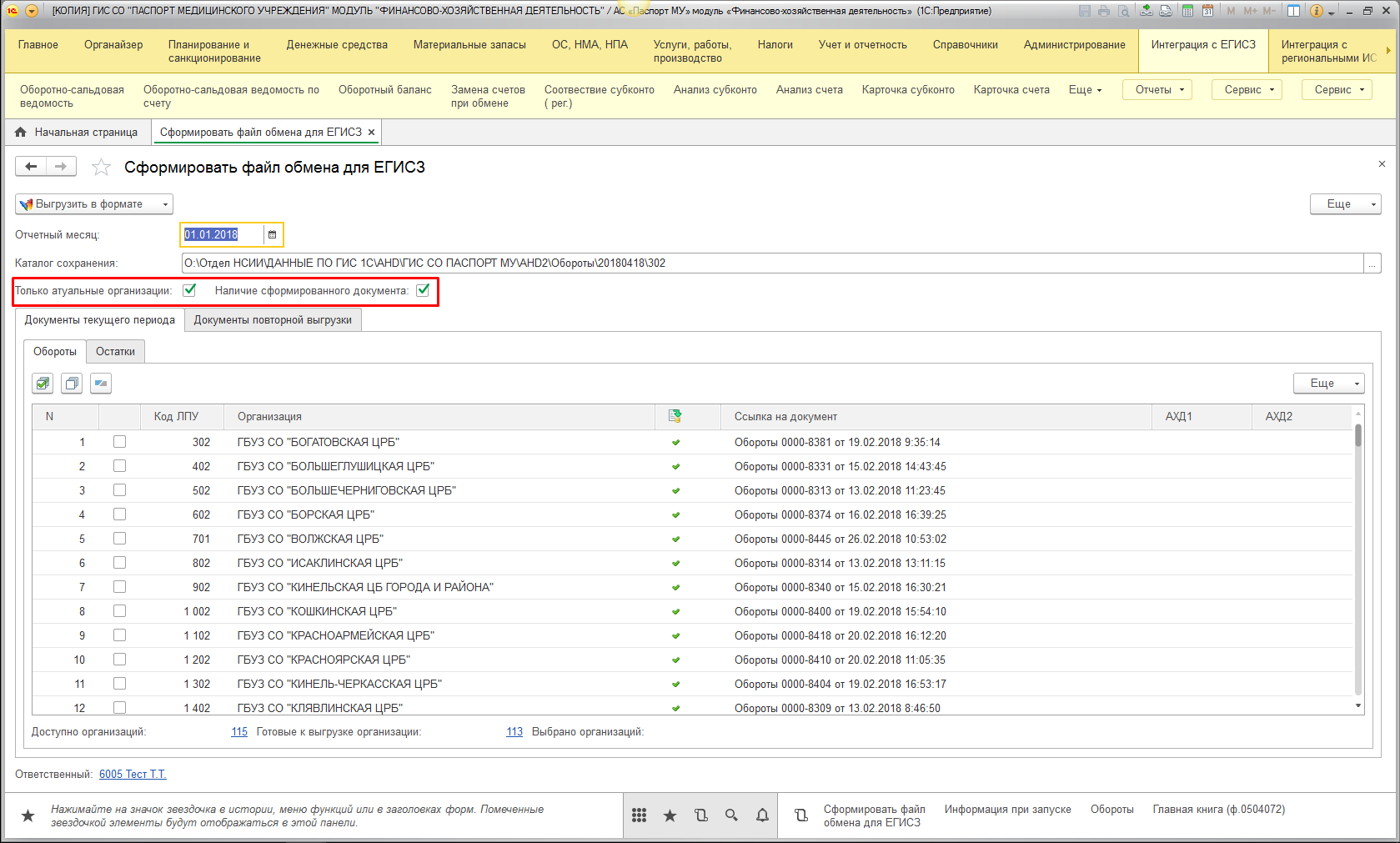 ФУНКЦИОНАЛЬНАЯ ВОЗМОЖНОСТЬ "Интеграция ЕГИСЗ (АХД)"