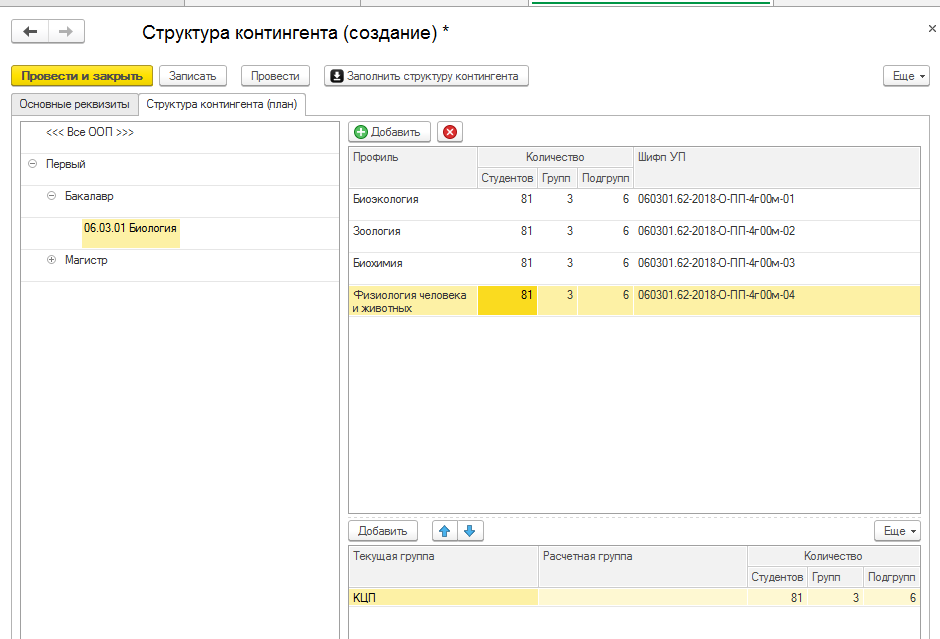 «Структура контингента»